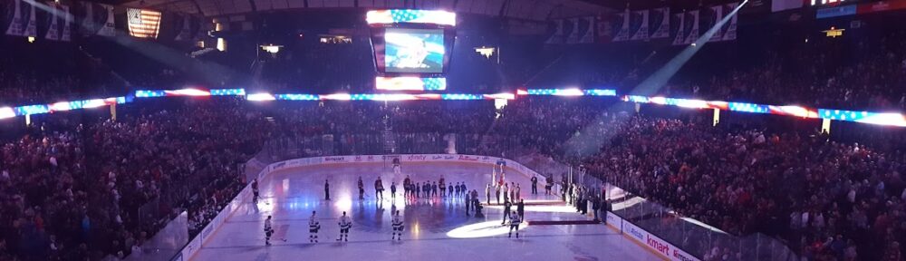 Chicago Wolves Star Wars Night 2017 Posted on February 25, 2017 by Carrie The Chicago Wolves Star Wars nights are always a good time. So on Saturday, Feb 25th we headed out to Rosemont to watch a Wolves game. And we got the treat of hearing Wayne Messmer sing the National Anthem.